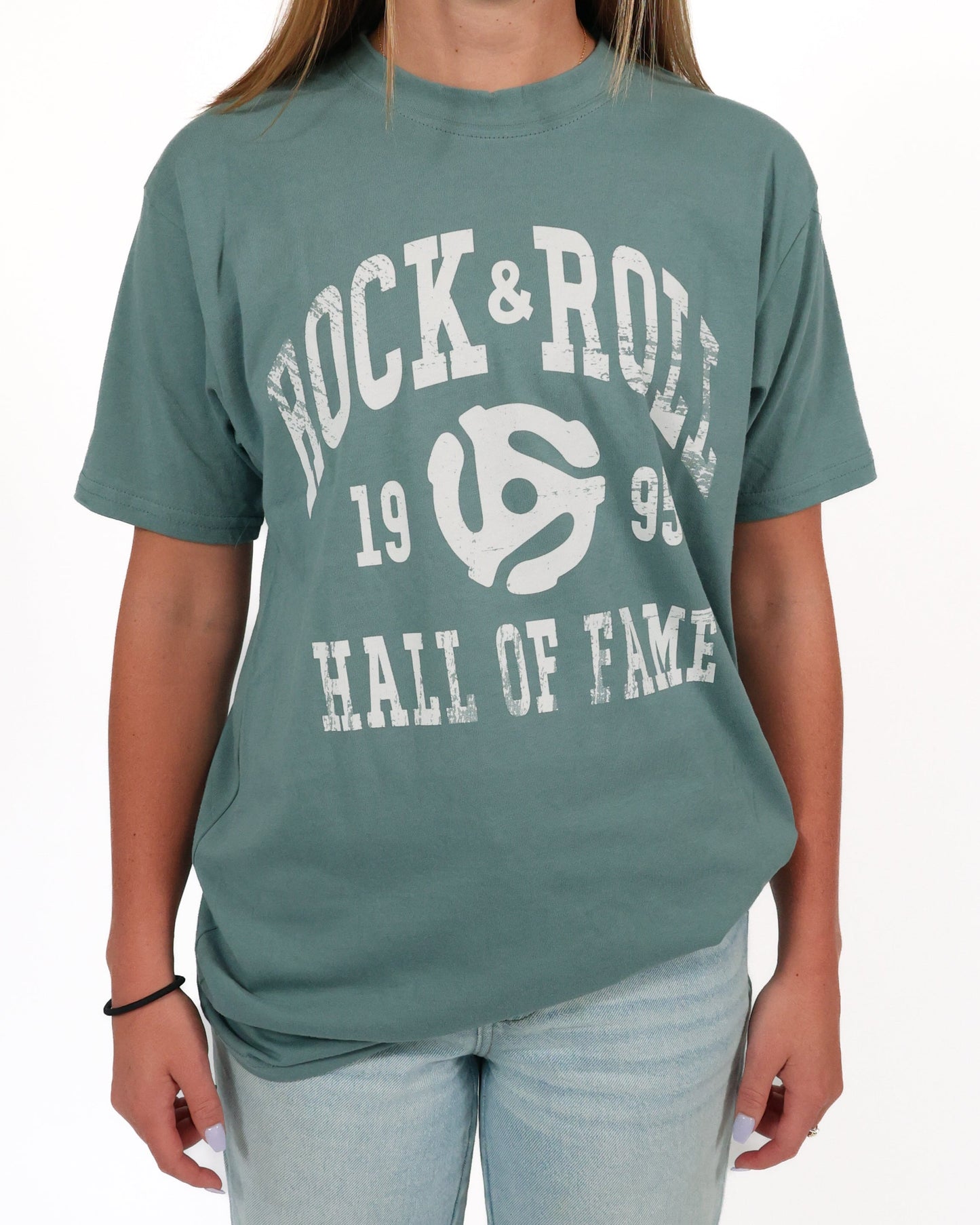 Ponte esta icónica camiseta del Salón de la Fama del Rock & Roll y dale caña con estilo. El logo vintage y el diseño de espaciadores en esta camiseta azul humo 100% algodón demostrarán tu pasión por la música. ¡No te pierdas esta prenda imprescindible para cualquier fan de la música!