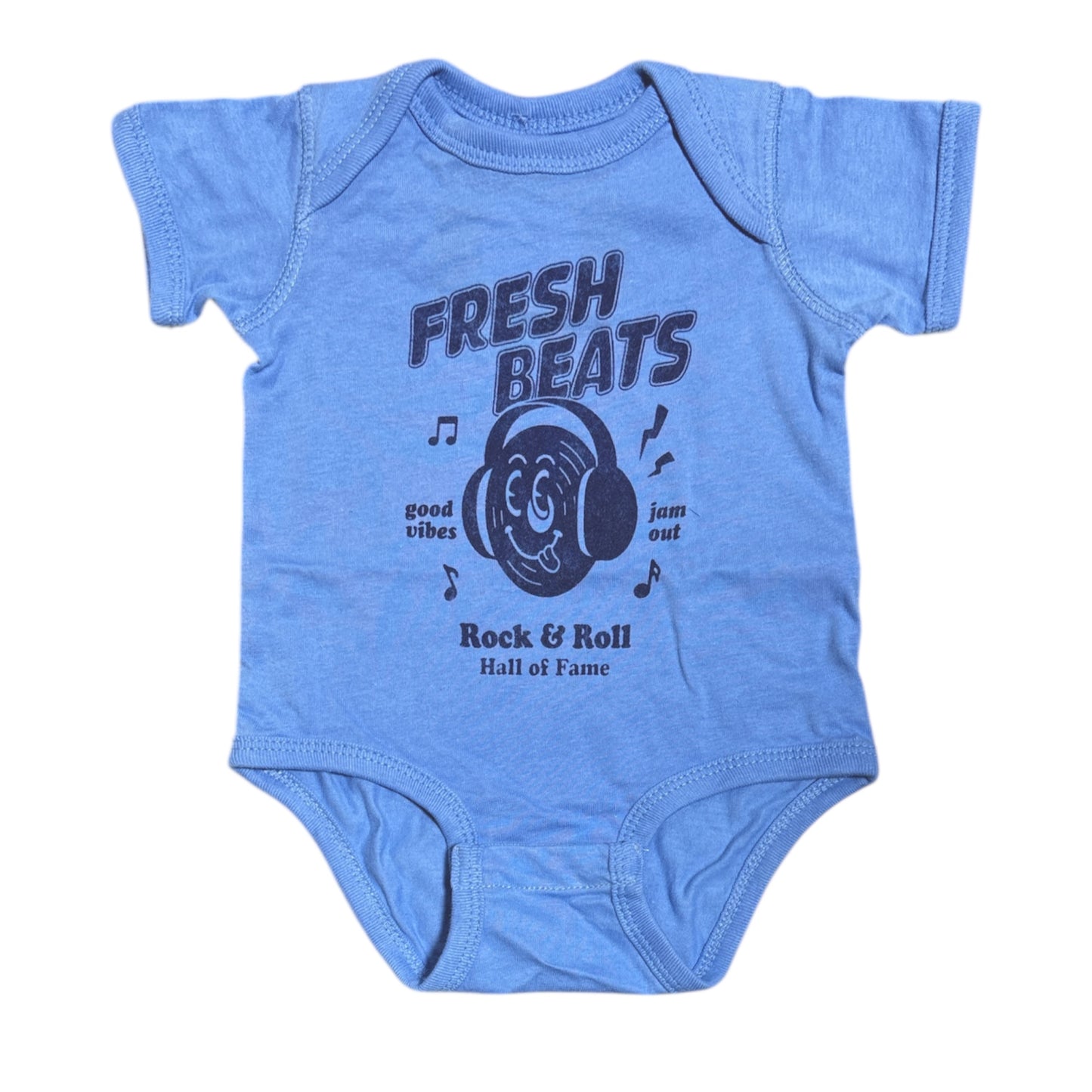 This playful toddler button romper features a vibrant blue design and is made from 100% soft cotton for all-day comfort. Show off your little rock star’s style with an exclusive Rock & Roll Hall of Fame design that’s perfect for tiny fans ready to jam out in comfort and coolness.